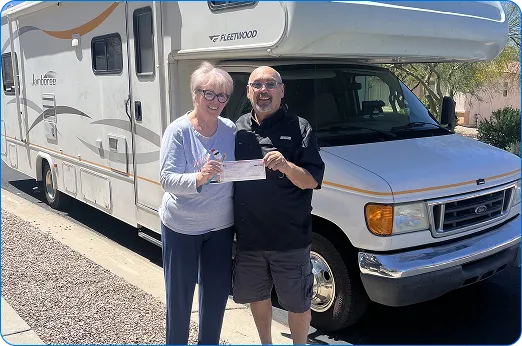 "Needed to sell my 5th wheel as I was moving and had no way to transport it to another state. They asked a few questions and I sent them photos, they made me an offer and I accepted. They came to my home and picked it up and handed me the check. It was all done quickly and professionally."